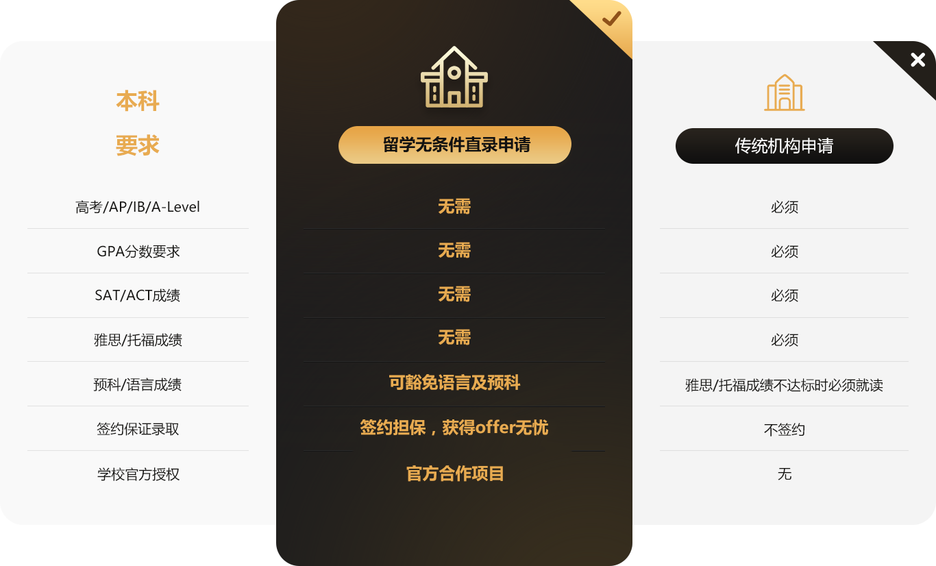 我们作为从2012年国内第一批做直升的机构,通过多年的积累和沉淀和各大主流留学国家和地区的各大院校校董和招生办或者研究生院直接建立了密切的联系和关系网,每年都会拿到这些学校的内部名额和机动名额以服务于我们的学生;